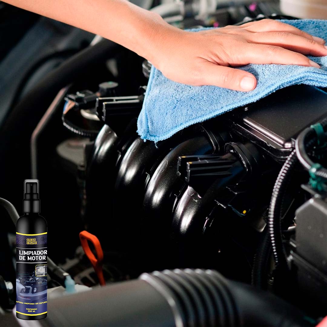 Protege y Embellece: No solo se trata de limpiar, sino también de proteger. Nuestro producto deja una capa protectora que ayuda a prevenir la acumulación futura de suciedad y le da a tu motor un brillo duradero.